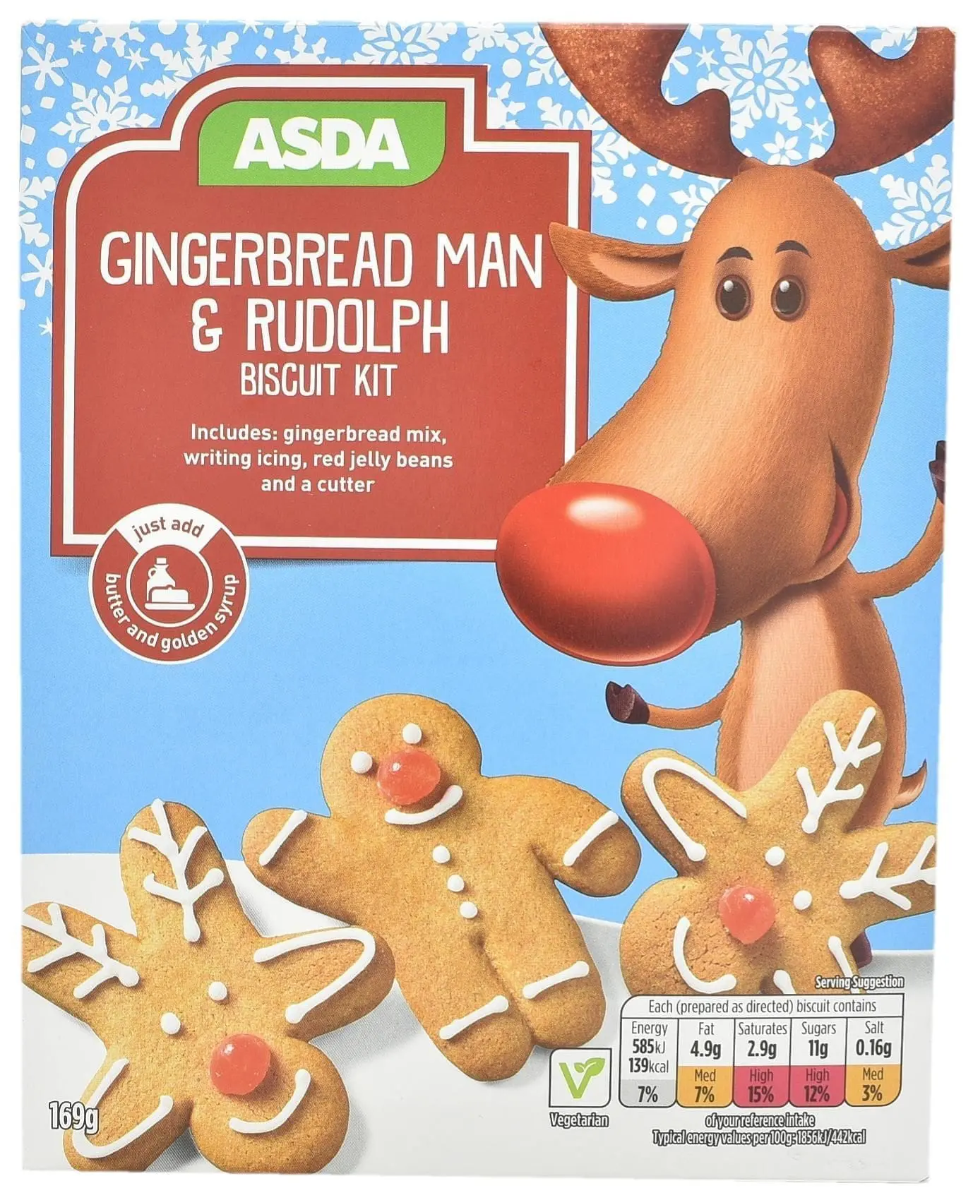 Asda Gingerbread Man & Rudolph Biscuit Kit calls for butter (UK)