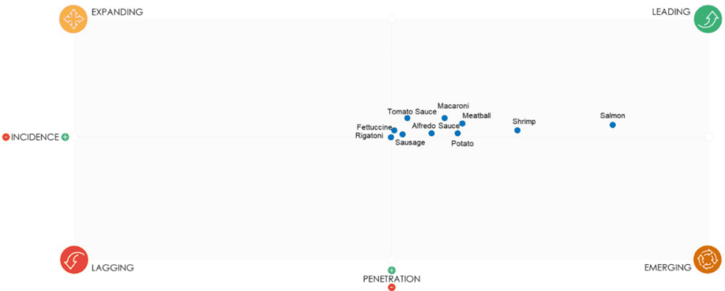 The US Menu Matrix shows relative positioning and performance of menu attributes (flavors, ingredients, dishes, beverages etc.) This month, we take a look at the top-performing and emerging flavors related to the pizza and pasta categories.