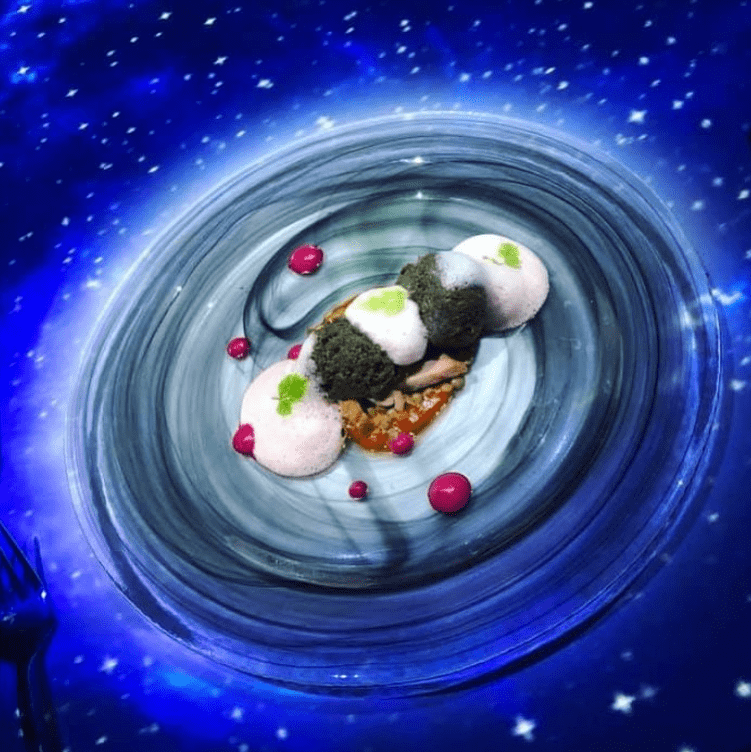 It offers an epicurean journey using state of the art 360 projection with food curated by Chef Jeffrey Ramsey, the youngest Michelin-starred chef in Japan. Imagination comes to life during the course of the evening, with a set meal accompanied by projections on the four walls and on the table. Dishes are introduced by changing immersive scenes, from the far-off space to the deep sea, with soundtracks curated to further enhance the visual.
