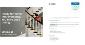 Chase utilized direct mail to encourage customers to open a HELOC account to fund home improvement projects.