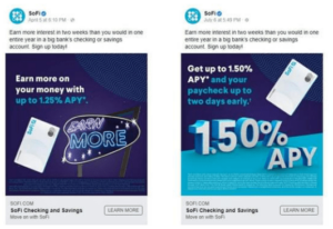 SoFi turned to paid social to update potential customers on the benefits of its online savings account. The brand focused messaging in social posts on its benefits that exceed those of “big banks.”