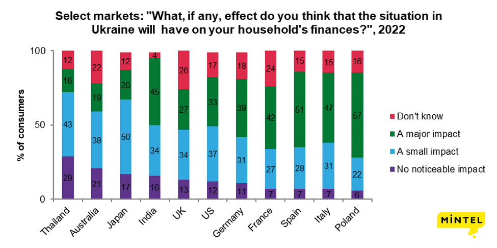 Australia, for example, is more than 8,000 miles away from Ukraine, but 57% of Australians still feel that the conflict will have at least some impact on their finances, including 19% who think it will have a major impact.