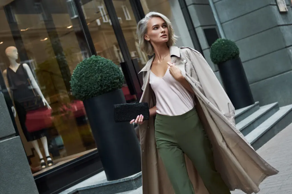 Zeitlose Klassiker wie Trenchcoats gehören zur schlichten Ästhetik des Modetrends.