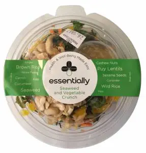 Beschrieben als origineller, innovativer Fertigsalat enthält dieses Produkt braunen Reis, Linsen, Seegras, Ingwer und Cashewnüsse.
