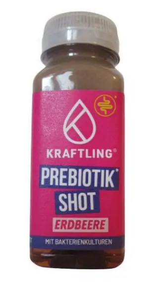 Der präbiotische Shot von Kraftling ist speziell für den Darm formuliert. Die Marke gibt an, dass jeder Shot 3 Gramm der empfohlenen 12 Gramm Chicorée-Inulin pro Tag enthält, das die normale Verdauungsfunktion durch Erhöhung der Stuhlfrequenz fördert.