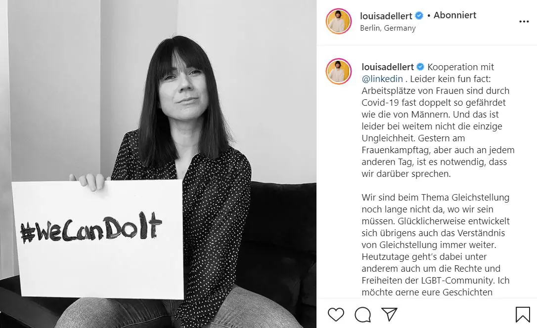 Influencerin Louisa Dellert setzt sich für sozialen Wandel ein. Anlässlich des Internationalen Frauentags hat sie sich mit LinkedIn zusammengeschlossen, um mehr Bewusstsein für das Lohngefälle zwischen Frauen und Männern zu schaffen.