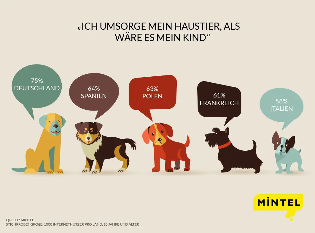 „Sinkende Geburtenraten, die Zunahme von Einpersonenhaushalten und steigende Scheidungsraten tragen allesamt dazu bei, dass Haustiere in Deutschland und anderen europäischen Ländern heute einen höheren Status genießen und zunehmend vermenschlicht werden. Haustiere sind zu einem Ersatz für menschliche Gesellschaft geworden – Haustierbesitzer behandeln ihre Haustiere wie ein Familienmitglied oder sogar wie ein Kind.“