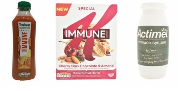 Kellogg Immune está enriquecido para fortalecer el sistema inmunológico de los consumidores, proveyendo el 50% de la cantidad diaria recomendada de vitaminas D, B6, B12 y ácido fólico. Tropicana Essentials Orange, Carrot & Ginger Immune Support Juice es una mezcla de jugos de naranja, zanahoria, piña y jengibre. El producto contiene vitaminas A y C para ayudar al sistema inmunológico.