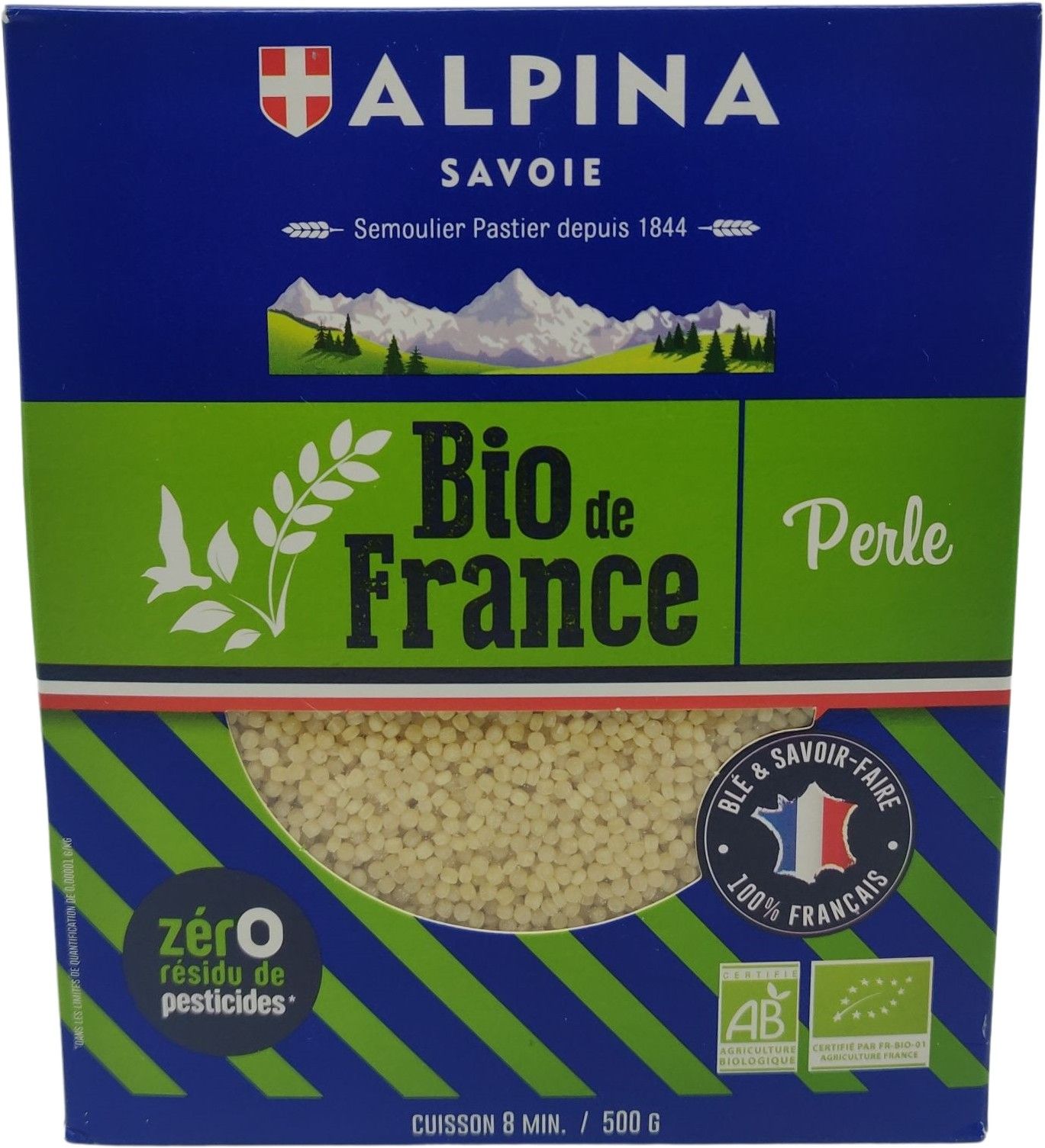 Sur l’emballage de ses perles de pâtes bio, Alpina Savoie quantifie son engagement envers les communautés agricoles. Source : Mintel GNPD