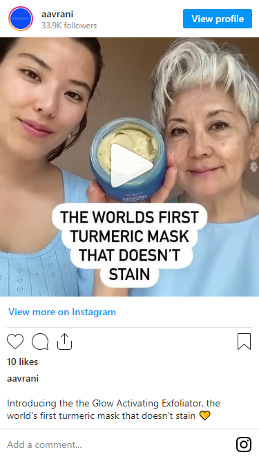 Aavrani, Cocokind, and Glow Recipe are three Asian-owned beauty and skincare brands that cater to the particular value-adds that AAPI consumers are looking for. Their marketing creatives spotlight natural ingredients like turmeric and cloudberry, and the video-based format of their creatives allows them to go into detail about how these ingredients blend traditional values with forward-thinking innovation.