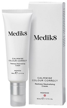MEDIK8 CALMWISE COLOUR CORRECT REDNESS NEUTRALISING CREAM (UK): Described as a multi-action treatment for redness-prone skin, it has been formulated with mineral green pigments to instantly neutralise redness. It contains bakuchiol, to quickly interrupt the inflammatory response and to stop flushing, aloe vera, niacinamide and caffeine to help reduce the size of blood vessels.