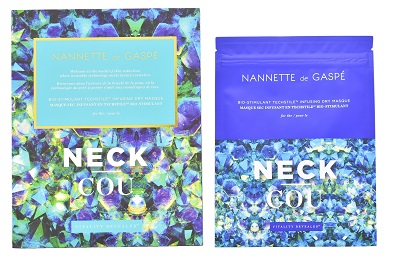 NANNETTE DE GASPE NECK BIO-STIMULANT TECHSTILE INFUSING DRY MASQUE (CANADA): This mask, enriched with blue algae, is designed for the neck. The material is activated by gentle massaging and claims to allow micro penetration of the active ingredients through the multiple layers of the epidermis. The technology also allows for humidity, temperature, pH or natural body movements to serve as trigger elements for the diffusion of actives. It infuses a cocktail of vitamins and nutrients into the skin to help reduce loose and sagging skin, restore hydration, promote a natural glow and revitalise the skin while improving overall skin texture.