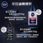 For day: Nivea Men Oil Clear Brightening Serum Charcoal Mud Cleanser.