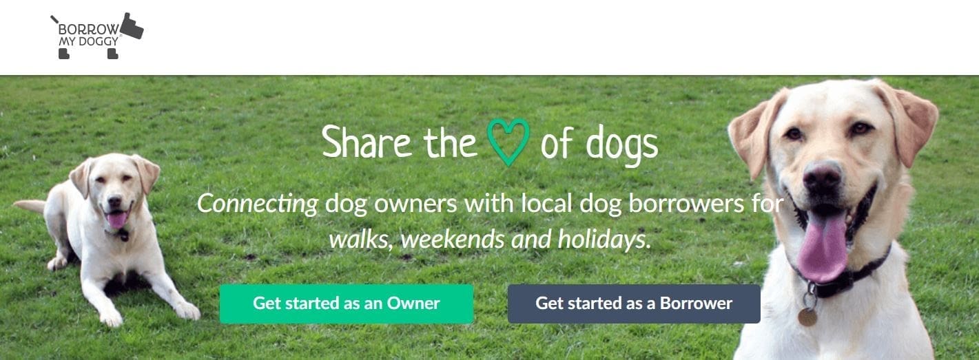 While Borrow My Doggy in the UK allows to borrow a dog for walks, playtime, overnight stays or holidays.