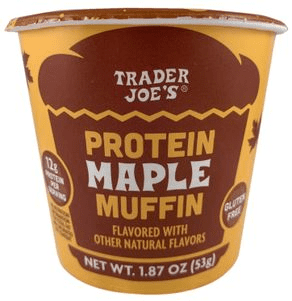 Trader Joe‘s Protein Maple Muffin Mix is made with cassava flour, milk protein isolate and tapioca starch. The muffin mix is high in protein, is gluten-free and contains natural flavours (US).
