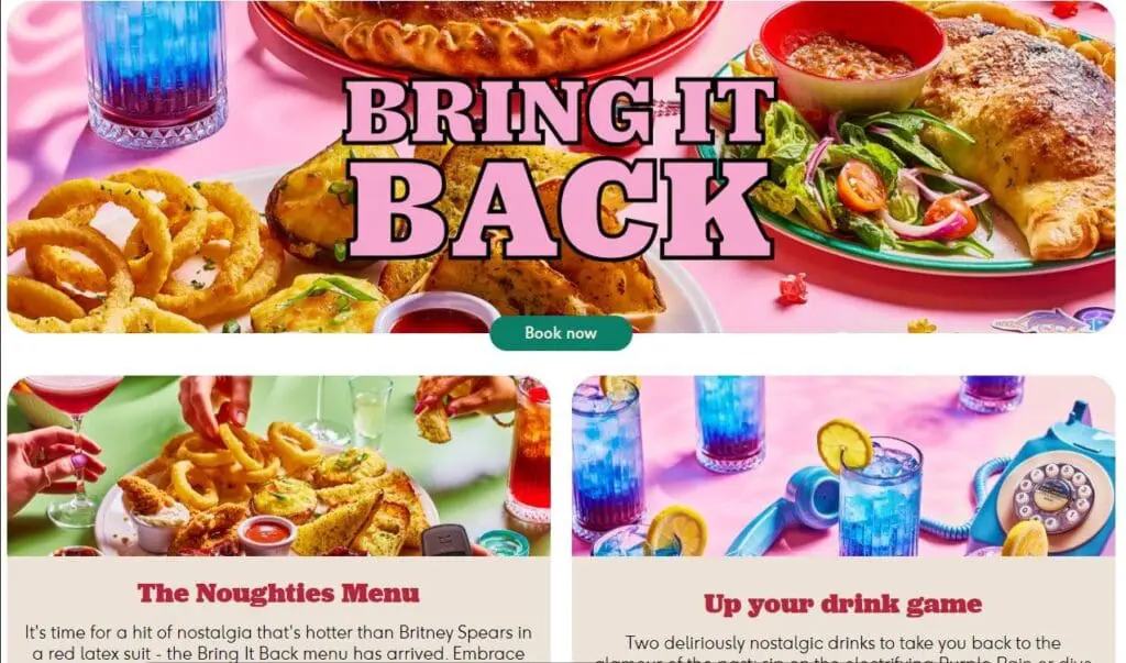 In the UK Frankie & Benny’s launched a ‘Bring It Back’ Spring Menu in April 2023, with dishes and prices from 2003. The menu was discounted by 20.03% for two weeks until May 2023, designed to appeal to cost-conscious diners amid the cost of living crisis. By using nostalgia as a marketing tool, Frankie & Benny’s can create emotional connections with their diners as people tend to look to the past for comfort against the backdrop of political turmoil and soaring, inflationary prices.