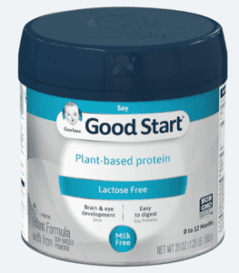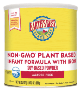 Earth’s Best Non-GMO Plant Based Soy Baby Formula is lactose-free and made with non-GMO soy. The baby formula contains DHA from algae oil (schizochytrium) (US).