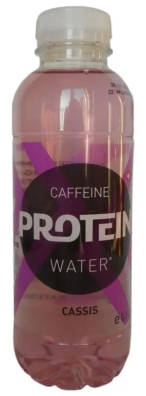 Focuswater Caffeine Protein Water Cassis (Caffeine Protein Water with Blackcurrant Flavour) contains 7.5g protein, 1.8g BCAA (Branched-Chain Amino Acids) , 0 sugar, 0 carbohydrates and B vitamins. This pasteurised product is low in calories, is gluten free, is made with whey protein hydrolysate and sweeteners, and retails in a 0.5L pack. (Germany)