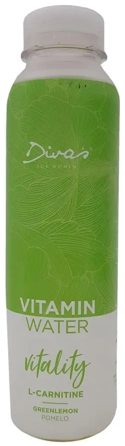 Diva’s for Women Green Lemon and Pomelo Vitality L-Carnitine Water is a non-carbonated and non-alcoholic drink made from spring water with natural green lemon and pomelo flavour, with added vitamins and L-carnitine, and is high in vitamins C, B3, B5, B6, B9 and B12. Pantothenic acid contributes to proper metabolism, which is important for the production of energy. According the manufacturer, L-carnitin is “an effective resource for burning fat, which promotes weight loss during physical activity.” (UK)