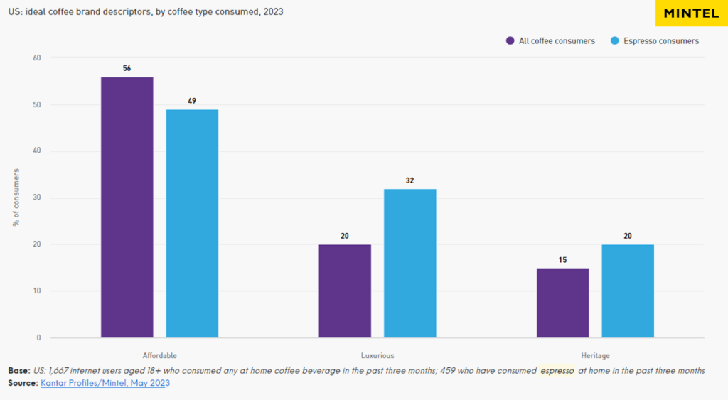 US espresso consumers too are valuable. Mintel research shows these consumers are less likely to view affordability as an ideal coffee brand descriptor when compared to all US coffee consumers. They are also more likely to seek out luxury and a heritage story in coffee, proving they appreciate the price point more in the value equation.