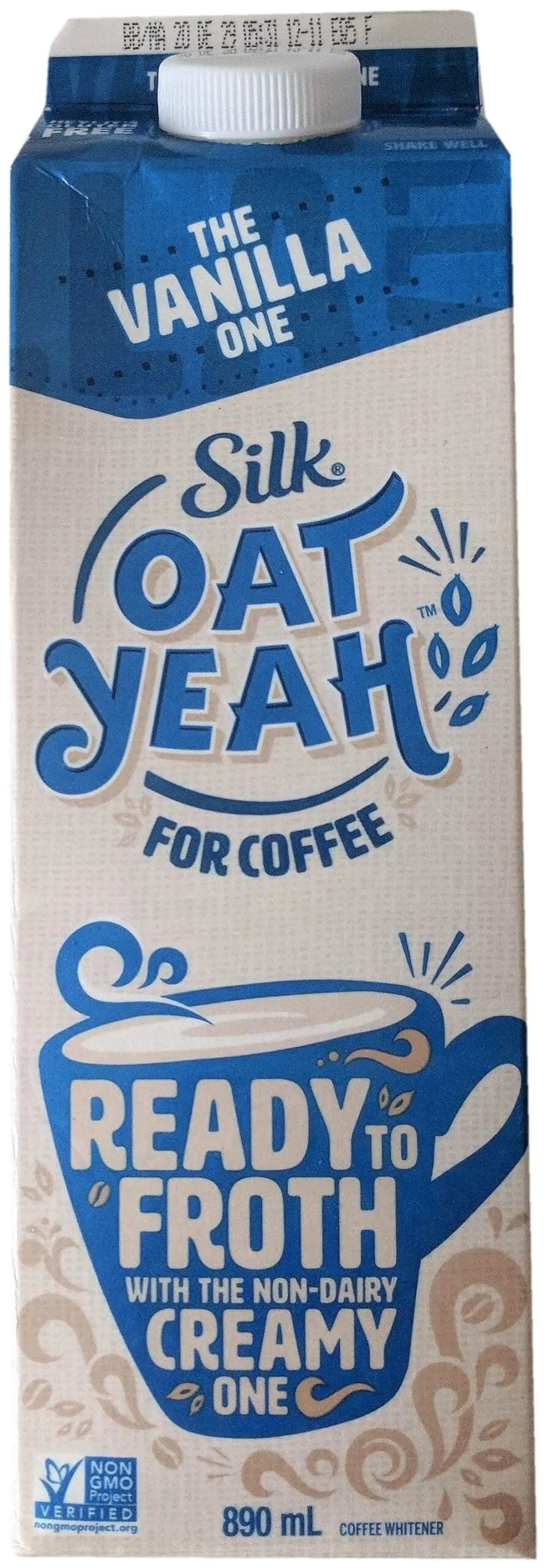 Silk Oat Yeah The Vanilla One Coffee Whitener claims to contain the richness of dairy creamer and to transform the consumer’s morning joe (Canada).
