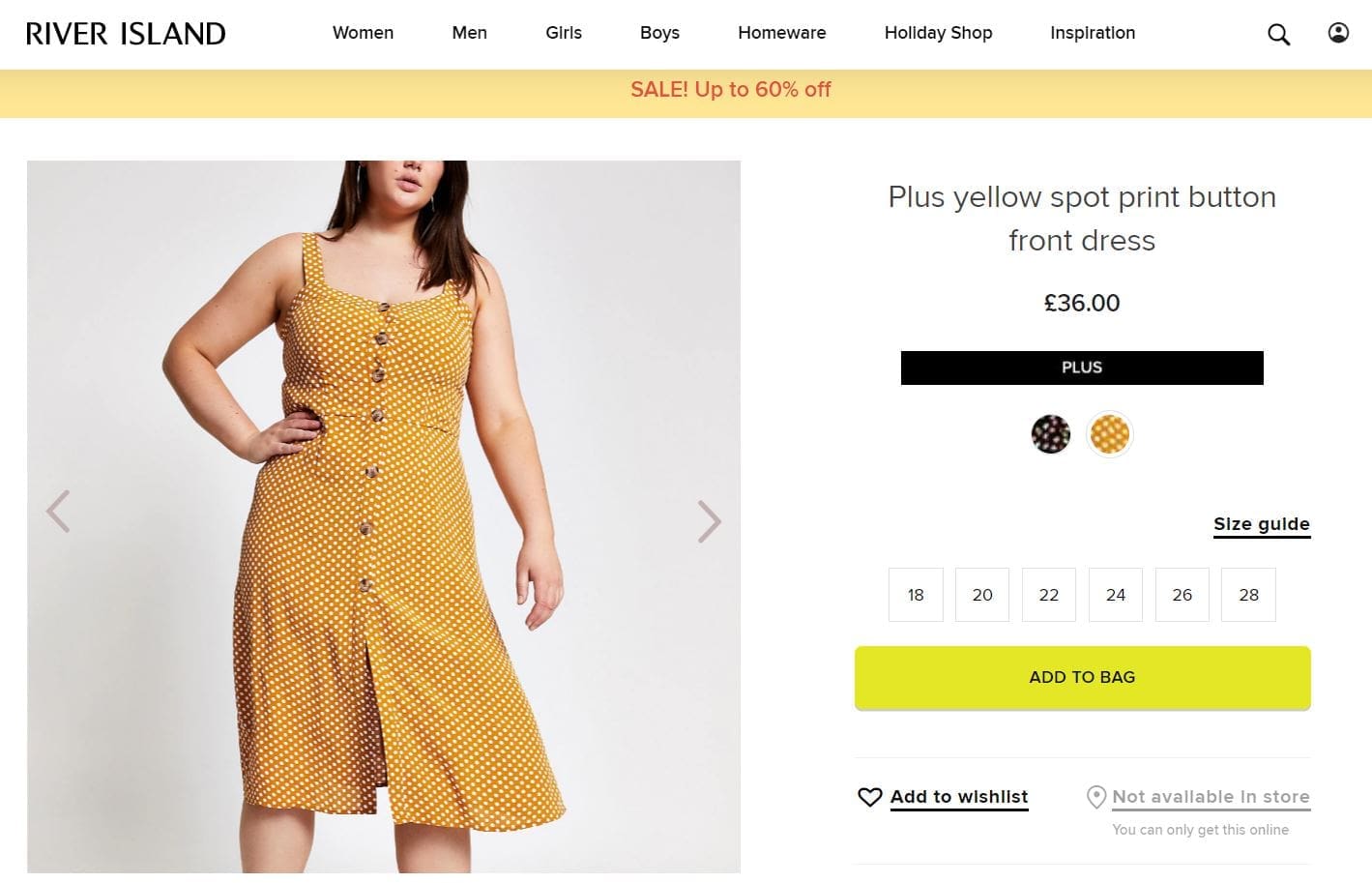 With the average women’s clothing size now a UK 16, according to SizeUK data, and with Mintel data showing that one in ten women wear a size 20 or above, it begs the question why women of different sizes are so hidden when it comes to advertising and clothing stores. It is also all the more surprising that other fashion retailers such as Oasis and River Island, who have gone to the effort of making plus-size ranges, hide them online, perhaps because in the fashion world display clothing in showrooms is always a UK size 8 as larger clothes are deemed less attractive.