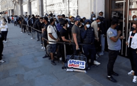 Customers queuing in masks in front of the Nike store on Oxford Street