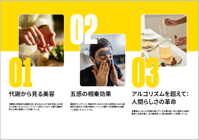 心の健康(感情的なウェルネス)への関心が高まることが、美容分野における“感覚の進化”を後押ししています。香り・音・触感などの革新的なアプローチによって、美容は「結果重視」から「体験重視」へとシフトしつつあります。