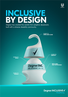 ユニリーバは、視覚障がい者や上肢運動障がい者のためのデオドラント製品「ディグリーインクルーシブ」を開発しました。