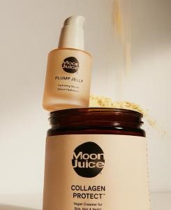 Moon Juice コラーゲンスタックシリーズは、同ブランドのサプリメント「コラーゲンプロテクト」と美容液「プランプジェリー」を採用し、ヒアルロン酸、シロキクラゲなどの成分でコラーゲンを保ち、内側と外側から潤いを与えてくれます。