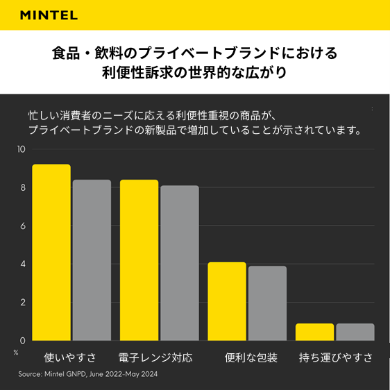 この変化は、製品開発や小売戦略の領域でますます明確になっています。ここ数年で「利便性」を打ち出す動きが広がっていることは、利便性主導のブランド戦略がいかに中心的な位置づけになっているかを示しています。使いやすさに関する訴求は依然として多く、テクノロジーによって実現される利便性や、途切れのない顧客体験は、差別化要因というより「備えていて当然」の前提条件になりつつあります。