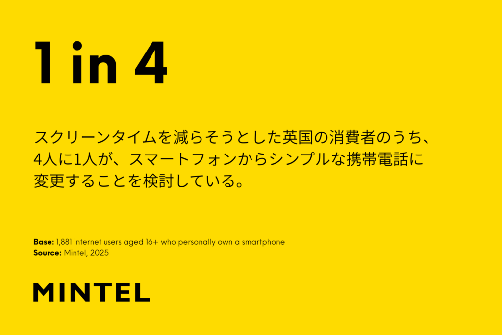 ただし、こうした強い結びつきと同時に、「距離を置いて主導権を取り戻したい」というニーズも高まっています。英国の消費者の5人に2人は、生活の中のデジタル活動量に圧倒されていると感じています。