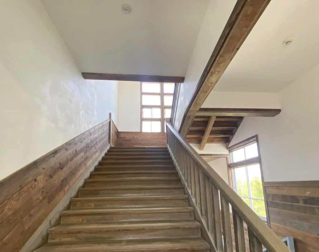 日本の昔ながらの木造校舎の階段を上る体験を忠実に再現]