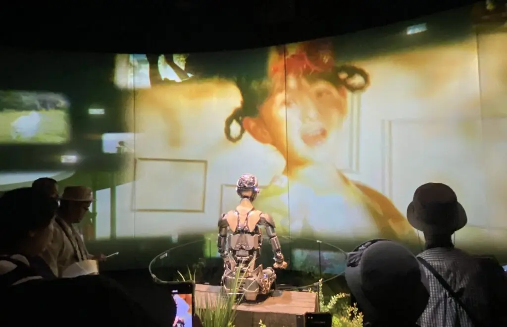 そんな問いを真正面から扱っていたのが、石黒浩教授(大阪大学)が手がけた「Future of Life(いのちの未来)」でした。展示はまず、人が古来よりモノに命を与えてきた歴史から始まり、やがて「記憶をアンドロイドにアップロードする未来」へと展開していきました。、人が古来よりモノに命を与えてきた歴史から始まり、やがて「記憶をアンドロイドにアップロードする未来」へと展開していきました。