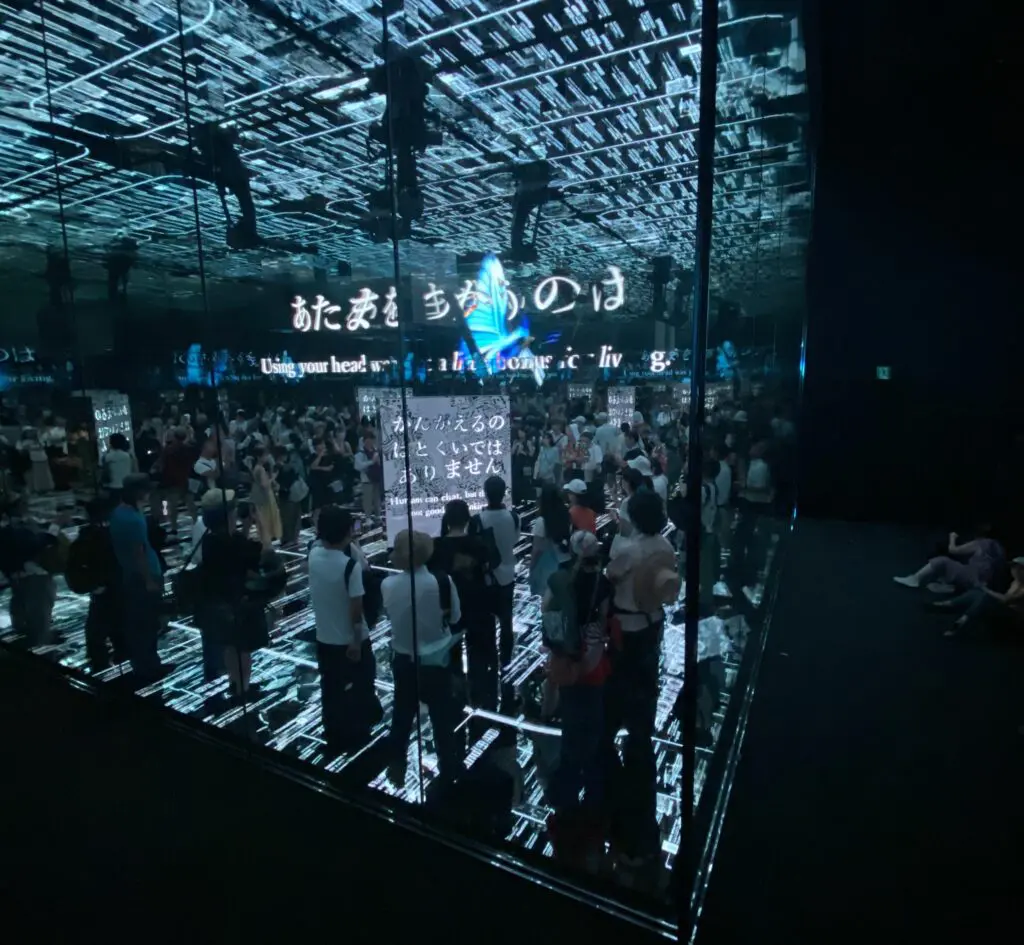 内部は鏡張りの空間。そこに現れるのは、LED投影による「デジタルヒューマン」。彼らは自らの生活や目標を語り、観客の問いに答え、人間と機械の境界を揺さぶります。この体験を通して、「デジタルな物語」がどのようにアイデンティティを形作り、そこから私たちは何を得ようとしているのかを問われたような気がします。