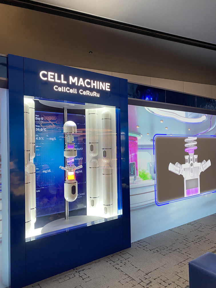 さらにロート製薬の「細胞デザインステーション」では、私たち自身の細胞からオーダーメイドの再生医療や治療が生み出される未来像を紹介。深刻な病気を効率的かつ正確に治療するだけでなく、予防や美容にも応用され、人体の“限界”そのものを塗り替えていく可能性が示されていました。