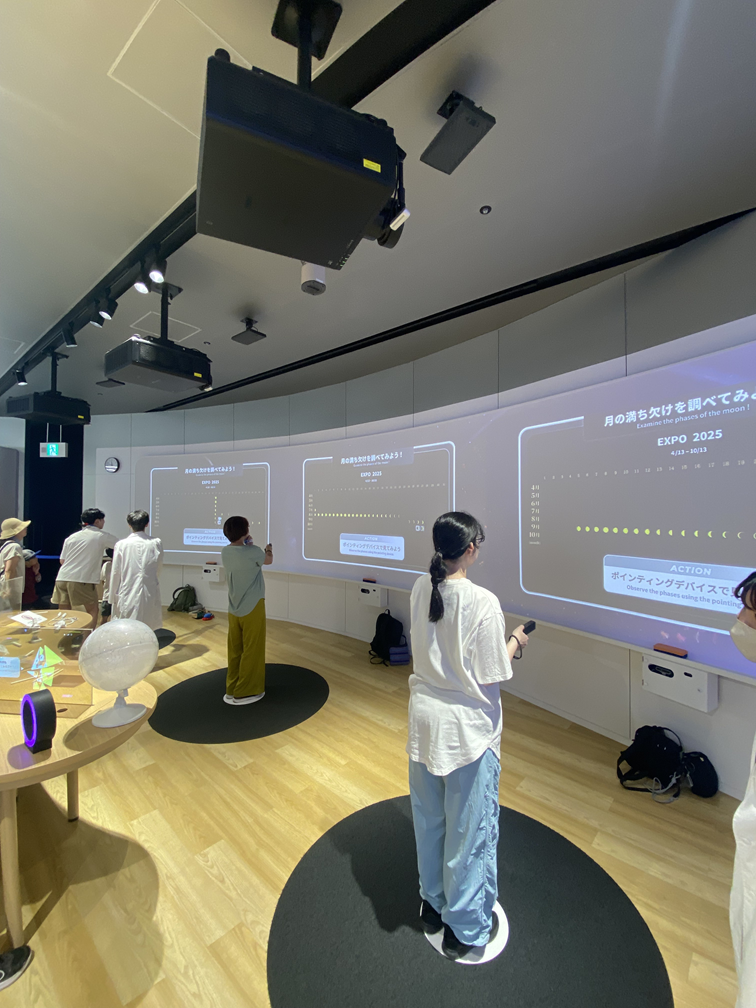 [未来の“学び”を体験する来場者たち。テクノロジーに支えられながらも、身体で没入する学びの場が広がっていました。]