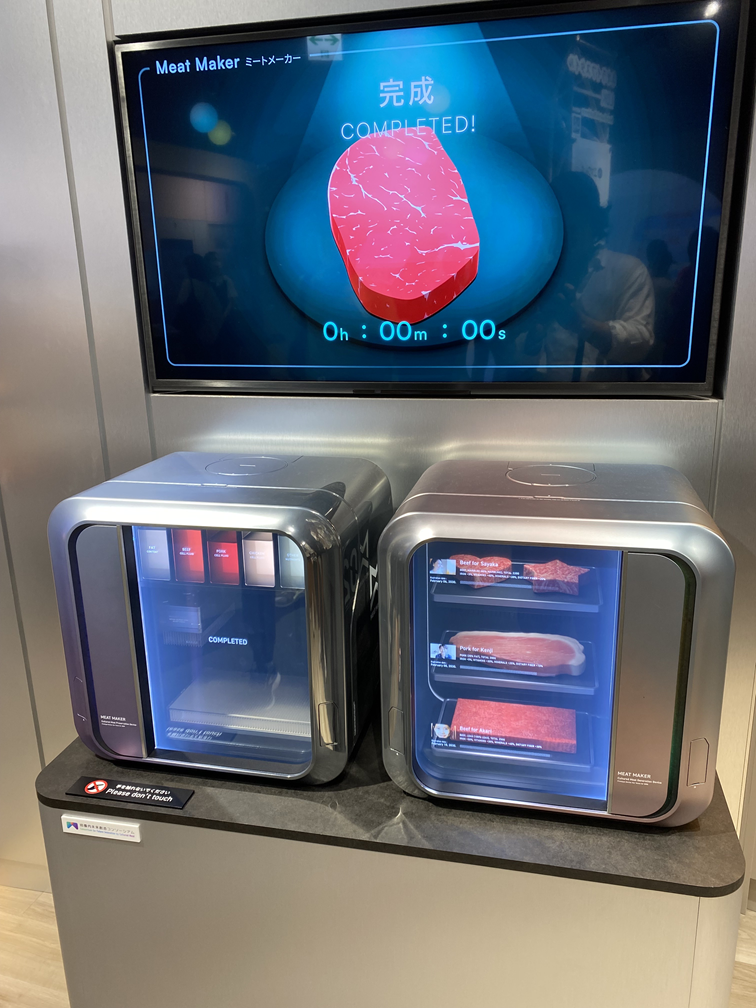 印象的だったのは、「パーソナルフードスタンド」。個人の健康データに基づいて、自動的にドリンクなどのサンプル品を出してくれる活気的な仕組みを描いています。体に必要な栄養を考えるとき、もう悩まなくていい――そんな未来の便利さを実感しました。さらに、細胞培養技術を使った「家庭で作る霜降り肉」の展示もありました。これまで記事や研究で目にしてきたものが、初めてリアルに形となって目の前に現れた瞬間。食の未来がぐっと身近に感じられる体験でした。