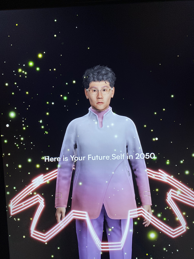 カラダ測定ポッドにより測定した健康データをもとに生成したアバターが目の前に現れた瞬間、まるで未来から届いた鏡をのぞき込んでいるような、不思議な感覚に包まれました。