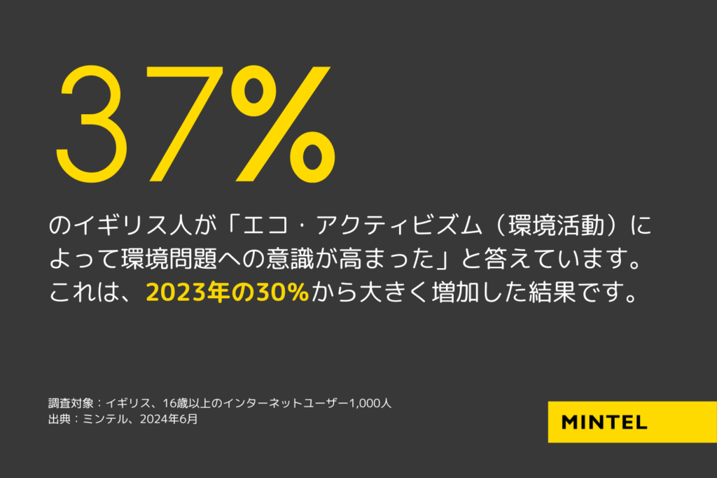 こうした意識の変化には、環境活動家による影響もあると考えられます。イギリスでは消費者の37%が「環境活動家の影響によって環境問題への意識が高まった」と回答しており、例えばGreenpeaceがユニリーバのDoveに対してロンドンの同社オフィス前で行ったデモなどの抗議活動が影響を与えています。