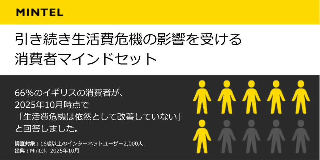 この3年間で、生活費危機のピークから断続的な回復が進んでいます。イギリスの消費者は限られた予算内でやりくりするための行動パターンを身につけており、今後もそうした倹約行動を続けると予想されます。