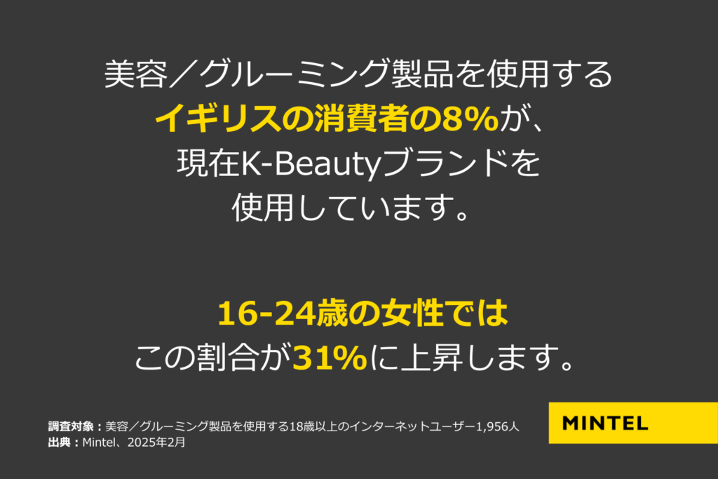価格を重視するイギリスの消費者の姿勢は、2025年の成功事例であるK-Beautyの台頭につながりました。消費者は、手頃な価格で得られる高い有効性、洗練されたパッケージデザイン、感覚的に楽しめるテクスチャーを提供するK-Beautyブランドに惹かれ、トレードダウン(安価品への買い替え)しながら美容ルーティンを拡大させています。同カテゴリーの成功はフェイシャルスキンケアカテゴリーの売上と販売数の両方を押し上げました。