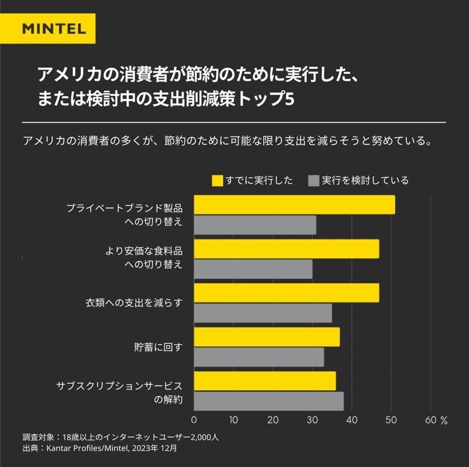 アメリカの消費者が節約のために取り入れている消費の変化: