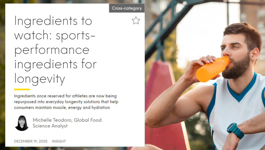 注目すべきは、GLP-1関連のメッセージが2025年に比べて控えめだったことです。ただし、これを関心低下と捉えるべきではありません。むしろブランドは、薬剤名を明示せずに、GLP-1と整合する食習慣パターン(プロテイン、食物繊維、水分補給、低GIオプション等)をプロダクト設計に取り込んでいるように見えました。これは、医薬品ではなく「行動(習慣)」に焦点を当てるべきだというミンテルの提言とも一致します。体重管理は引き続き重要である一方、Expo West 2026では、業界の会話が「強さ」「筋肉の維持」「代謝レジリエンス」へとシフトしていることが明確でした。