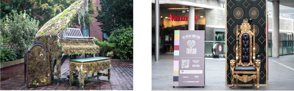 - リバプールは1週間にわたって「Taylor Town」に姿を変え、訪れた人が写真を撮ってSNSに投稿できる11点のアート作品を設置したアートトレイルや、テイラー・スウィフトをテーマにしたカップケーキ、友情ブレスレット、アップサイクルデニムが作れるワークショップなども企画された。