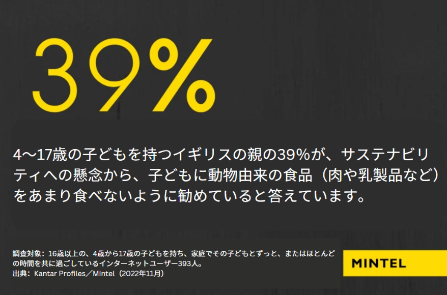 アルファ世代は気候変動への取り組みにおいて重要な役割を果たすことができます。多くの子供たちがサステナビリティの問題をますます意識するようになっています。イギリスでは、4歳から17歳の子供を持つ親の約4割が、サステナビリティへの懸念から、子どもに動物由来の食品をあまり食べないように勧めていると述べています。食品および飲料メーカーは、この世代の倫理観に沿う取組みを行う絶好のチャンスを手にしています。子どもやティーンエイジャーの心に響く方法で、環境への配慮を明確に伝え、証明することで、大きな影響を与えることができます。