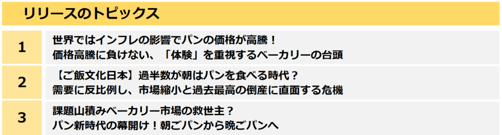 インフレの影響でパン価格が高騰する中、世界では「体験」重視のベーカリーが人気を集めています。日本でも朝食にパンを食べる人(59.7%)は、ご飯を食べる人(45.5%)よりも多く*、パン食は日本人の生活に定着していると言えます。しかし、パンの需要が高い反面、コロナ禍収束や物価高の影響による市場縮小により、2023年には国内のパン屋の倒産数が過去最高を記録するという逆説的な状況に直面しています。