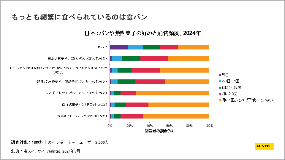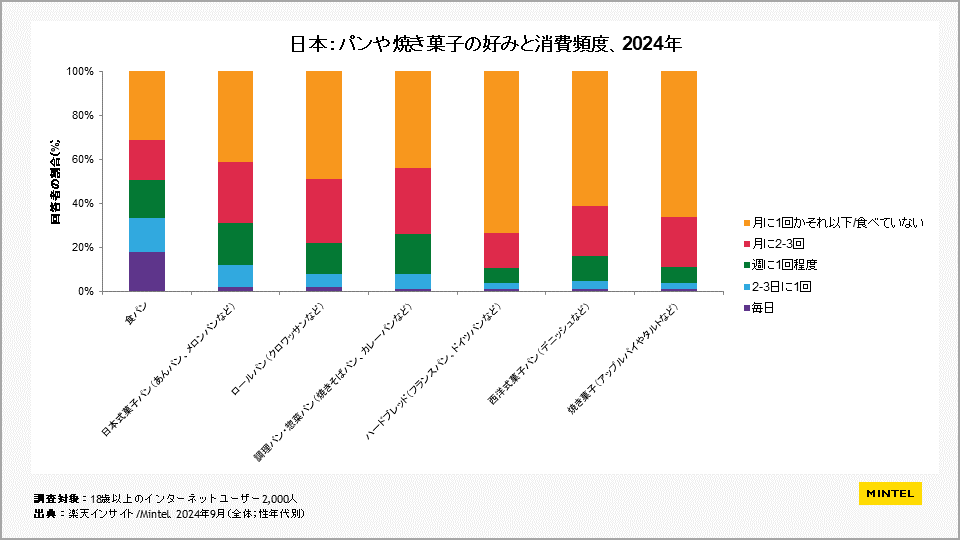 情報の出典元として【ミンテルジャパンレポート『パンと焼き菓子のトレンド – 日本 – 2024年』より】の明記をお願いいたします。