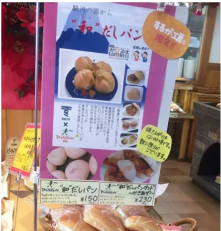駿河の国から”和”(なごみ)だしパンは、東海大学海洋学部の学生が、静岡県内のベーカリー「ピーターパン」と共同で、「和食に合うパン」をコンセプトとして開発した、かつお出汁を使った米粉パン。ピーターパンの店舗で販売されています。