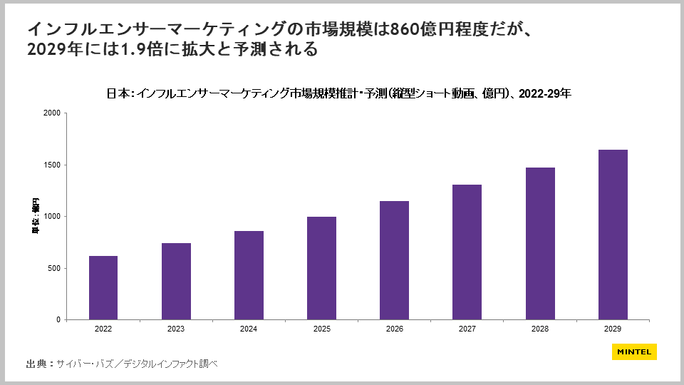 市場調査会社「Mintel Group」の日本法人である株式会社ミンテルジャパン(東京都千代田区)は、ミンテルジャパンレポート「ソーシャルメディア・トレンド(インフルエンサー)日本-2024年」にて、日本のインフルエンサーマーケティング市場を明らかにしました。